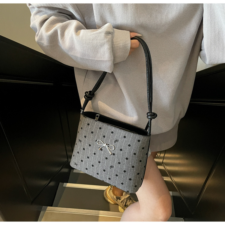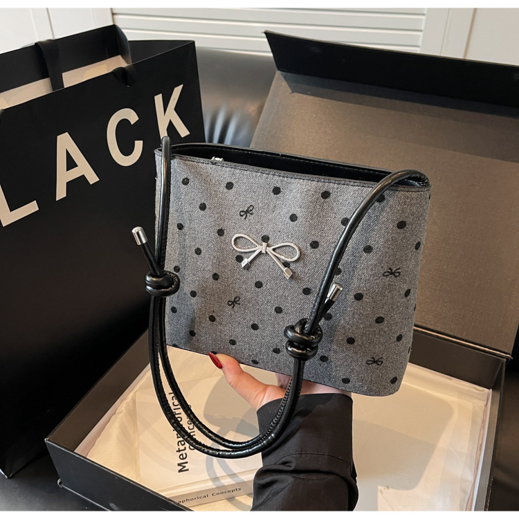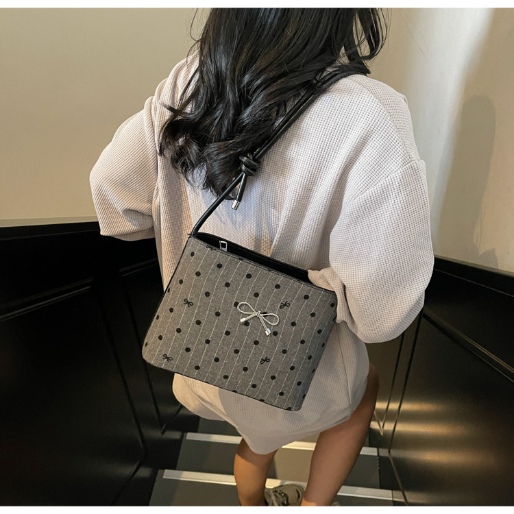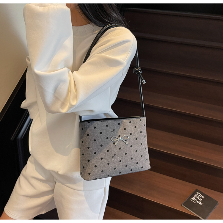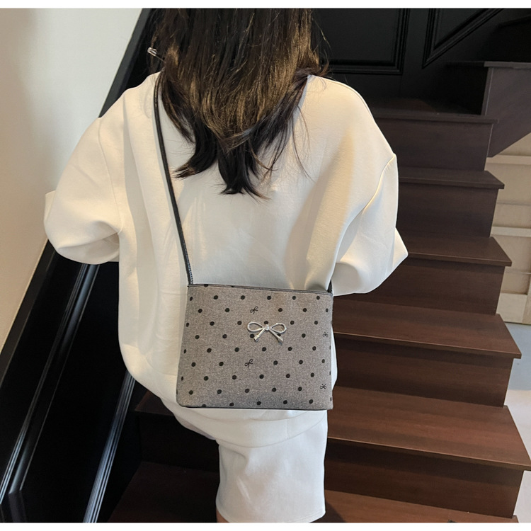 Canvas Polka Dot Fashion Shoulder Bow Crossbody Bag