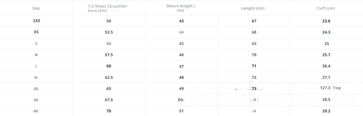 Size: XXS, XS, S, M, L, XL, XXL, 3XL, 4XL