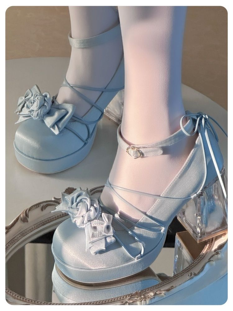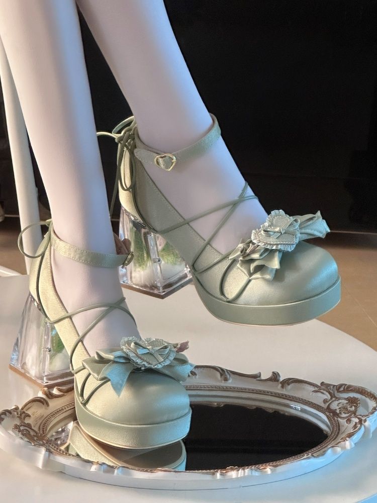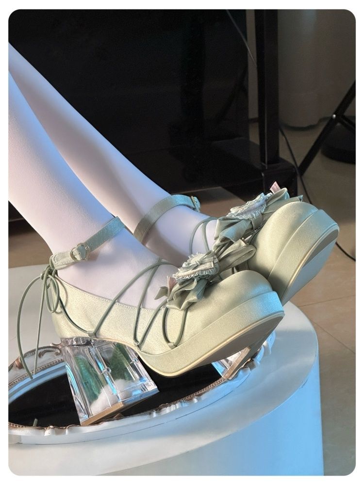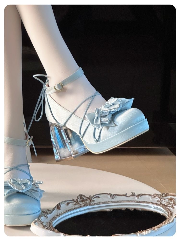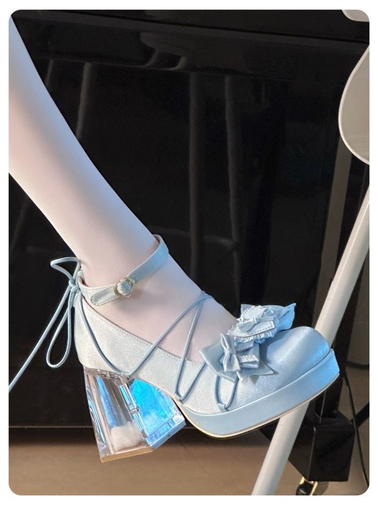 Glass Worry Elegant High Heel Pumps Round Toe Bowknot
