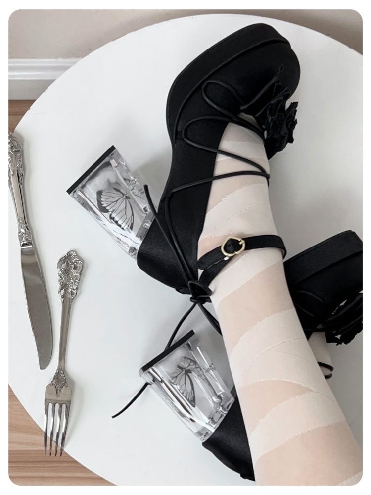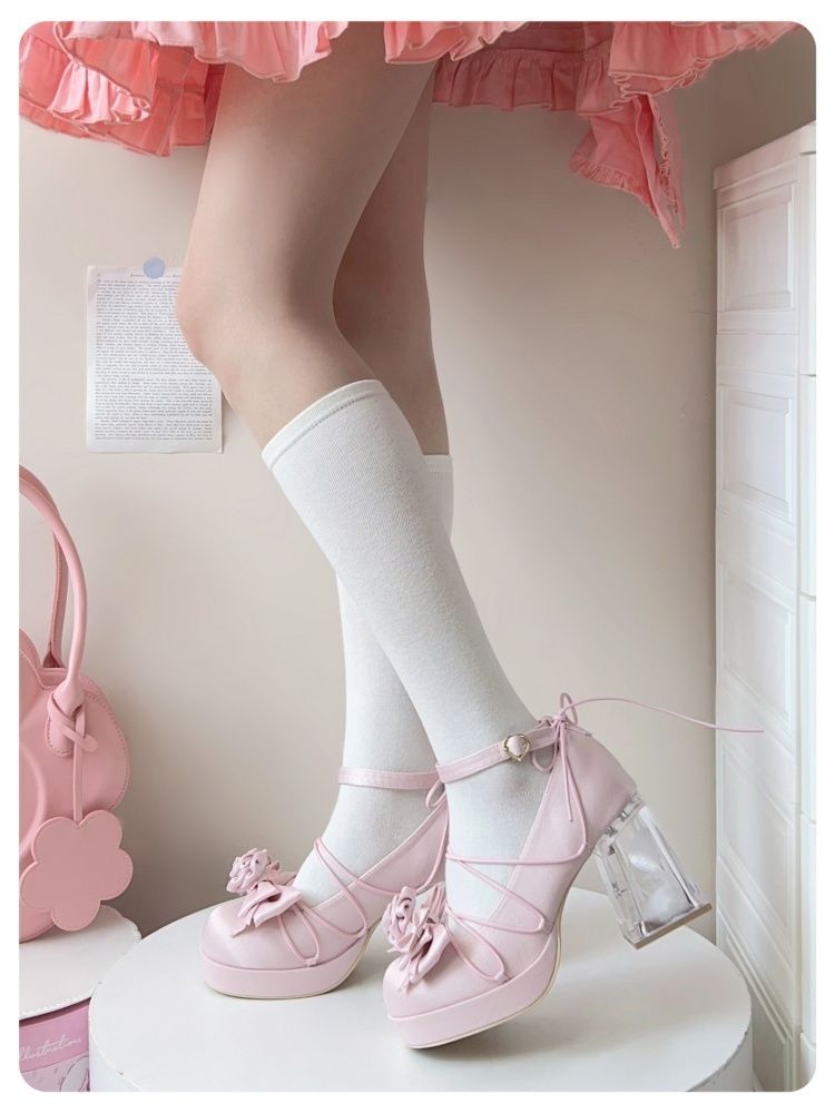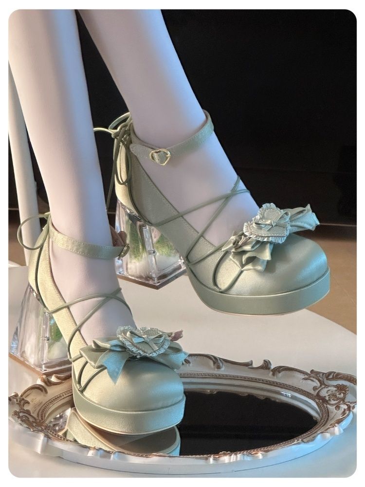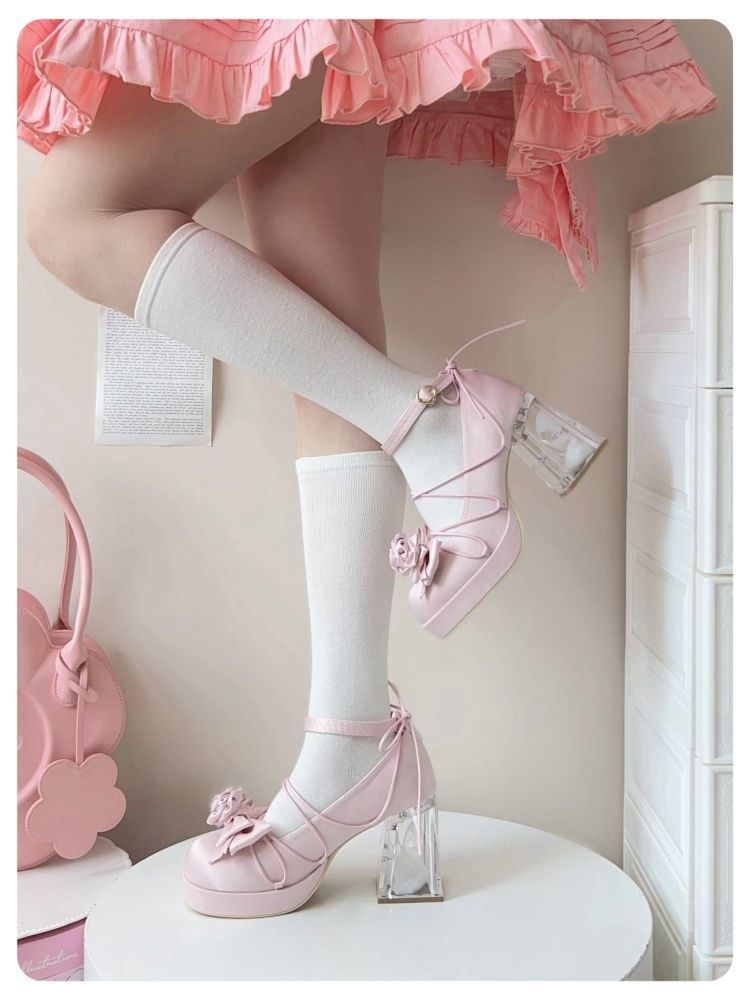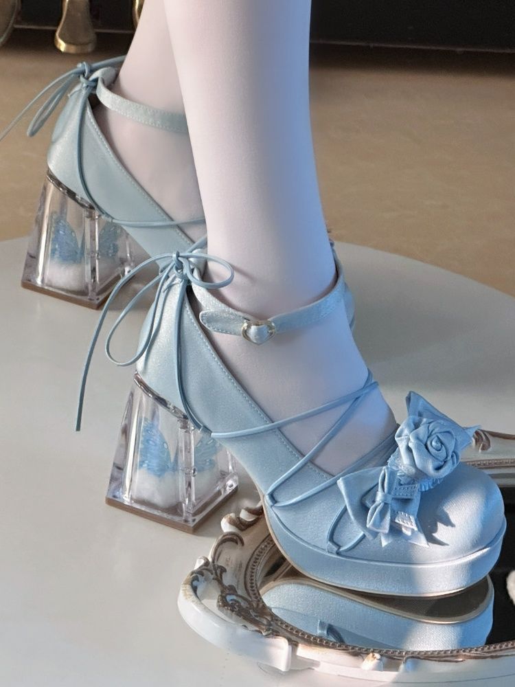 Glass Worry Elegant High Heel Pumps Round Toe Bowknot