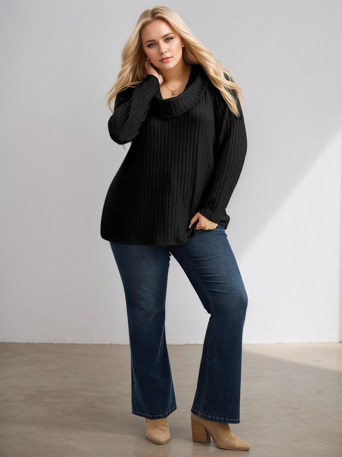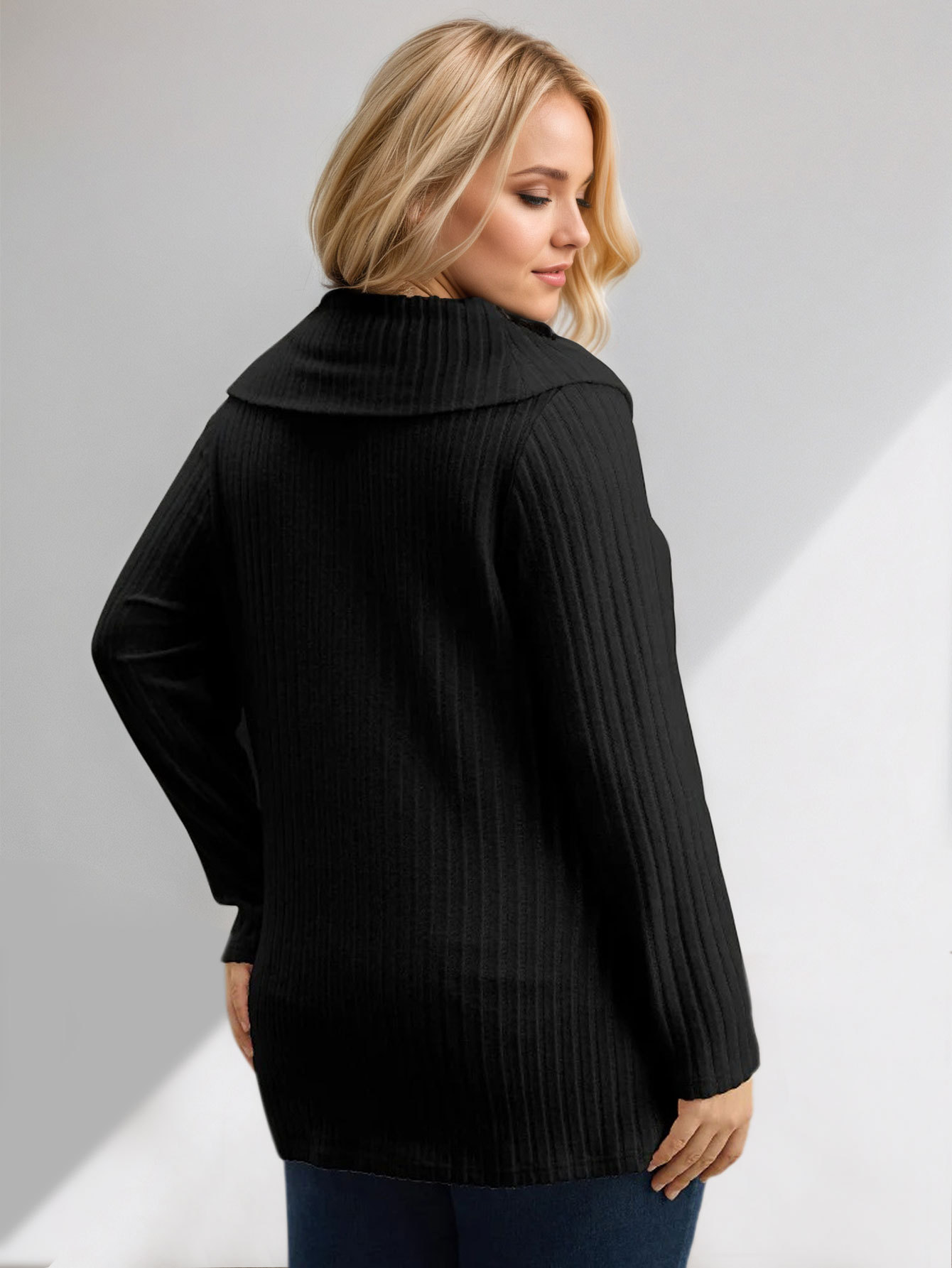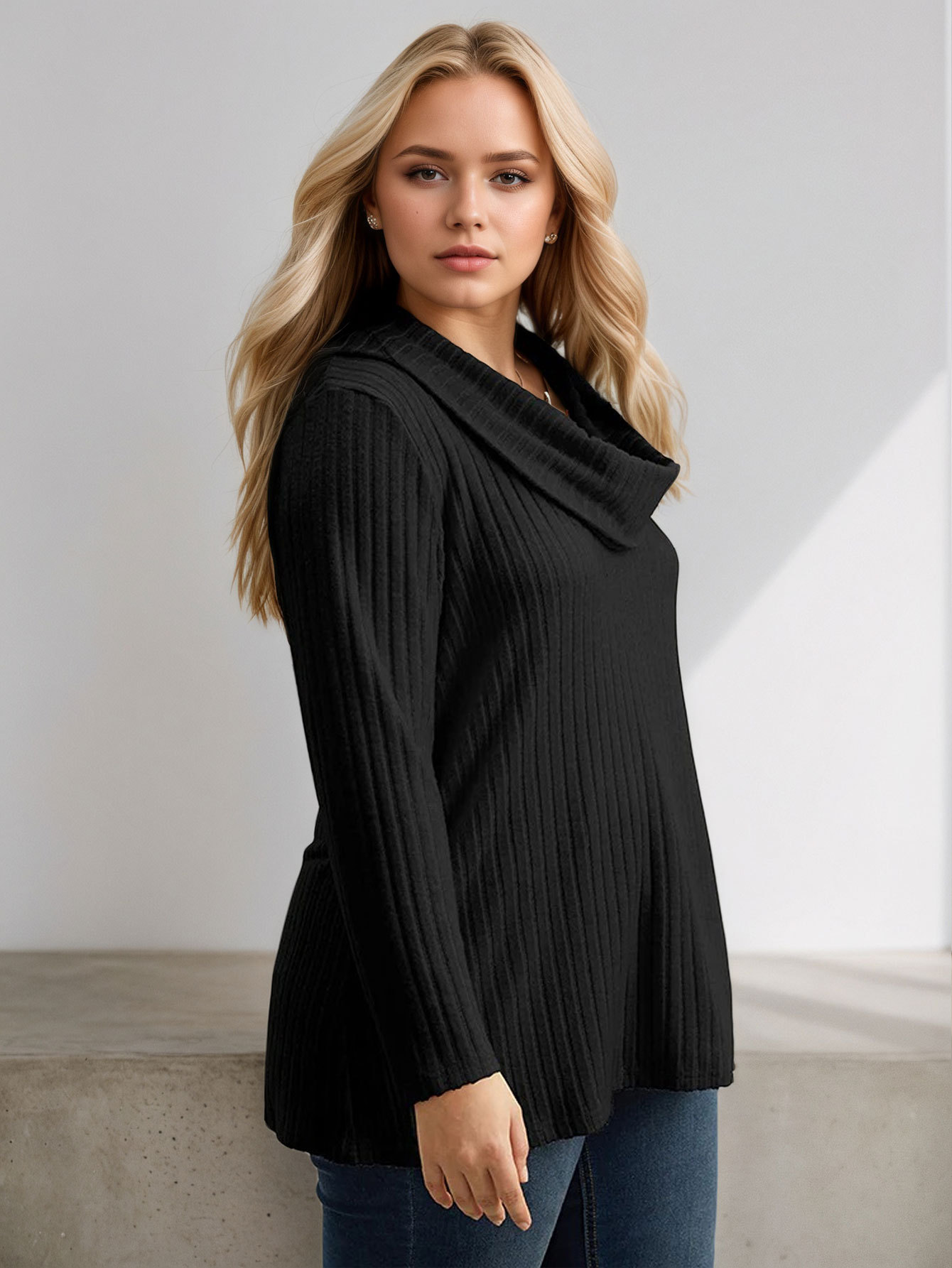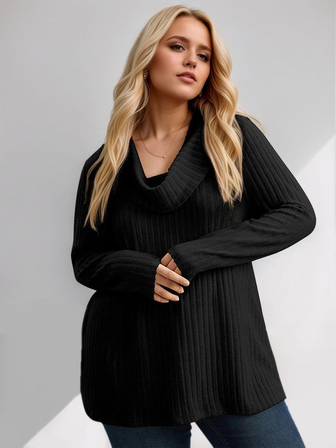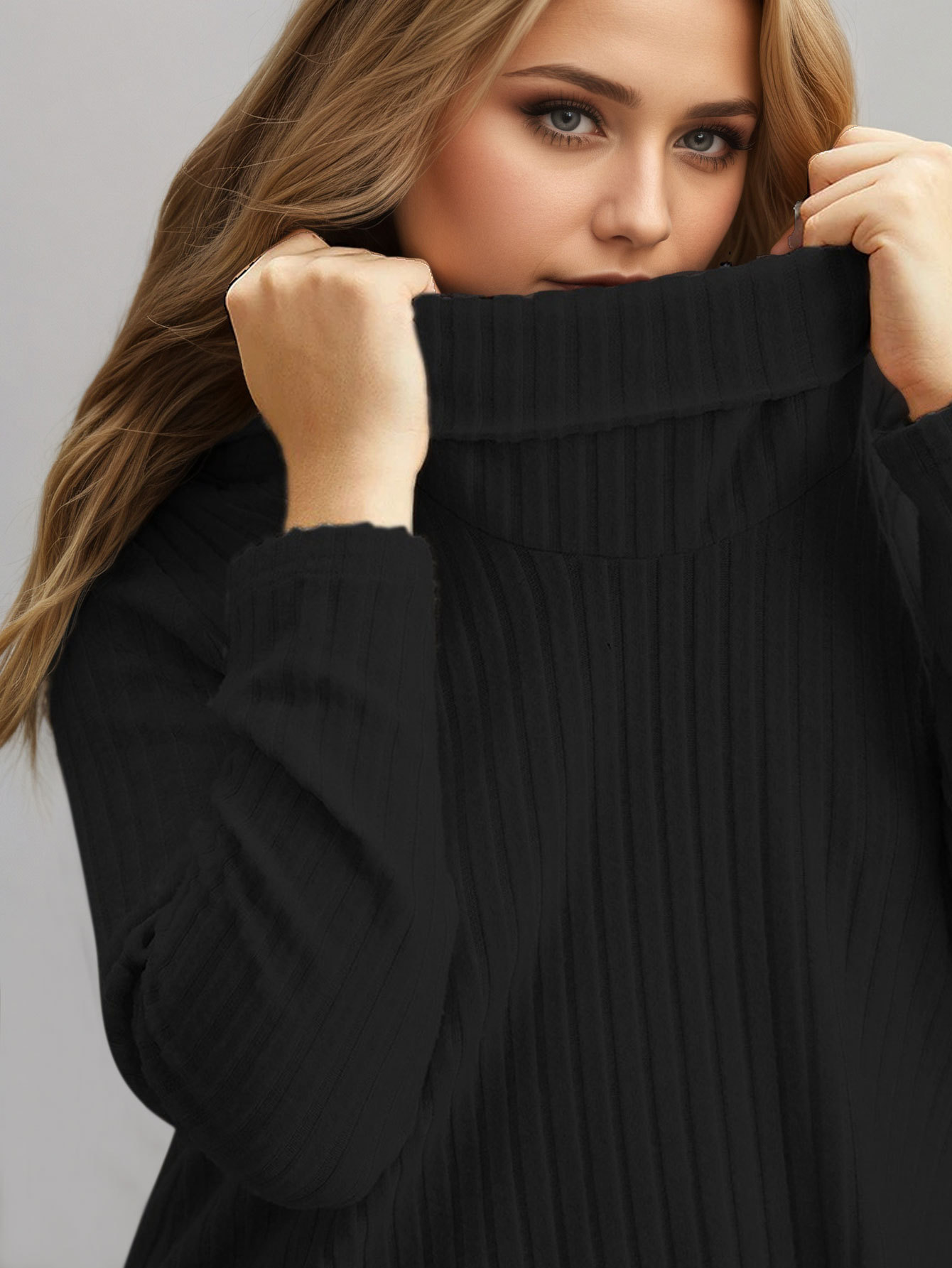 Knit High-neck Scarf Solid Color Long Sleeve T-shirt