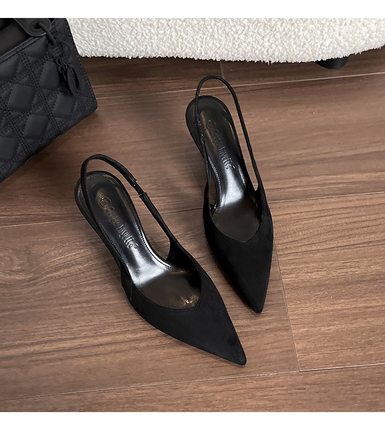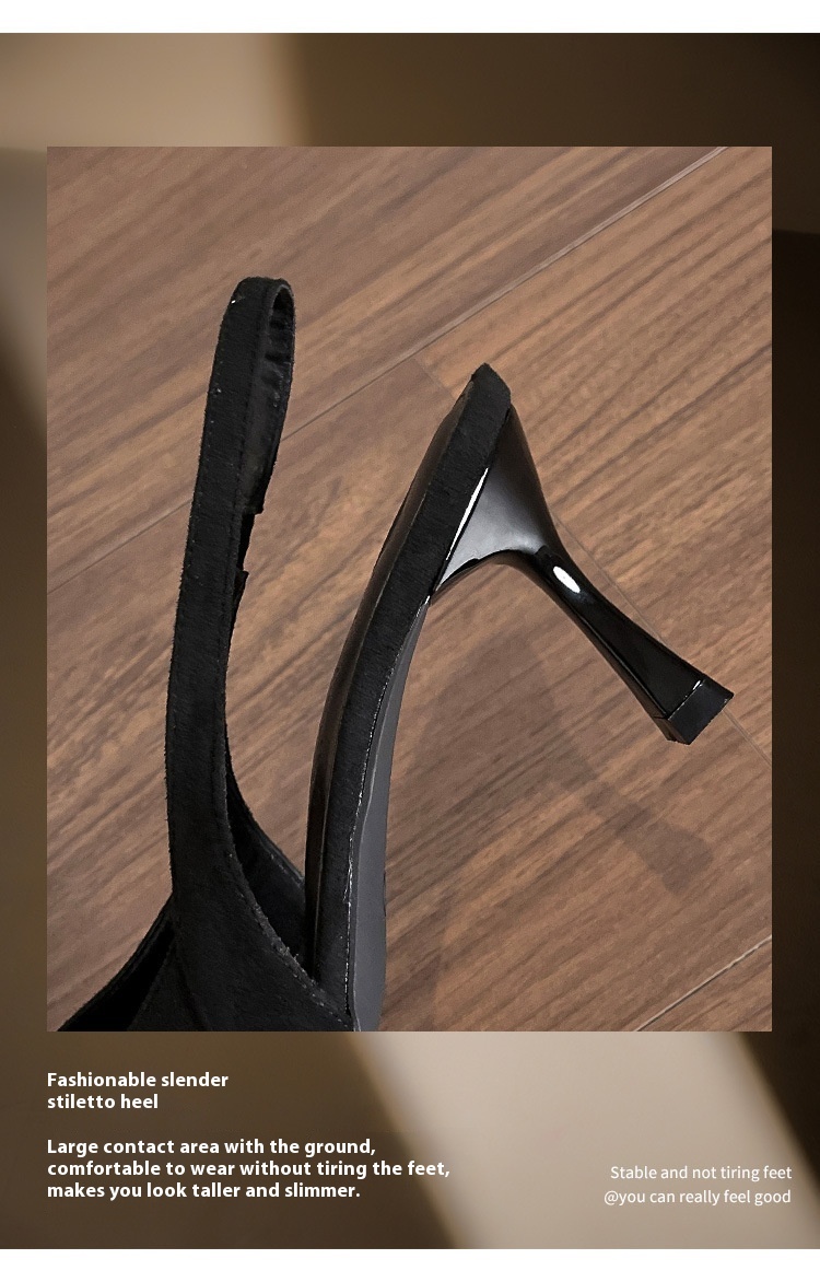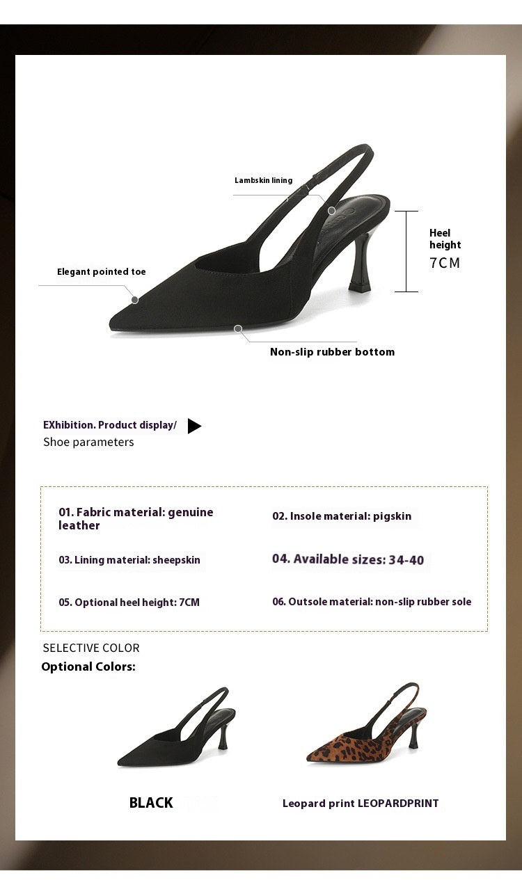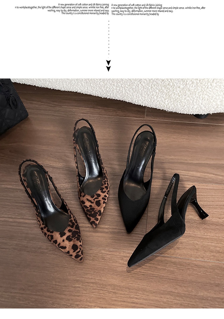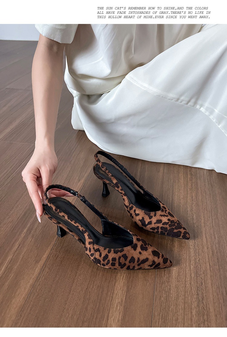 Niche Leopard Print High Heel Sandals Women Suede Closed Toe Pointed Toe Slingback High Heel Sandals