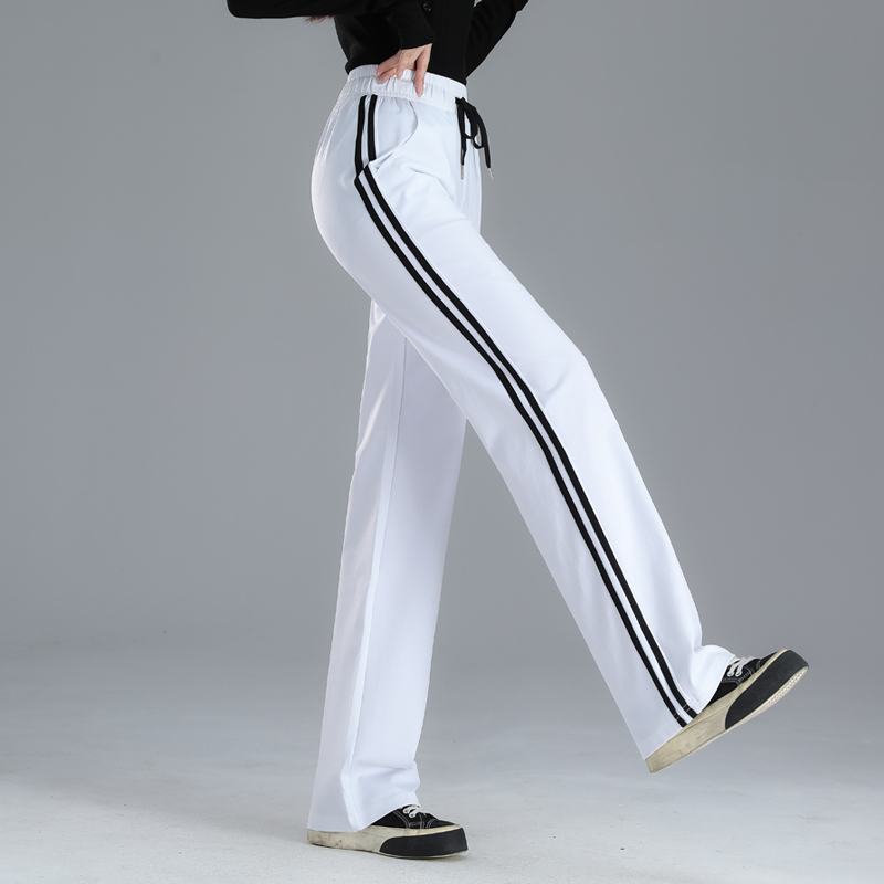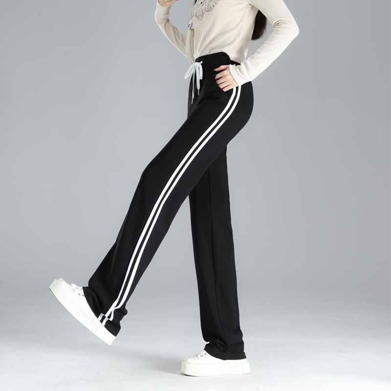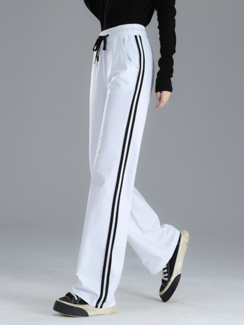 Straight-leg Sweatpants, Black And White Striped, Double-stripe, High-waisted, Wide-leg Drape Pants