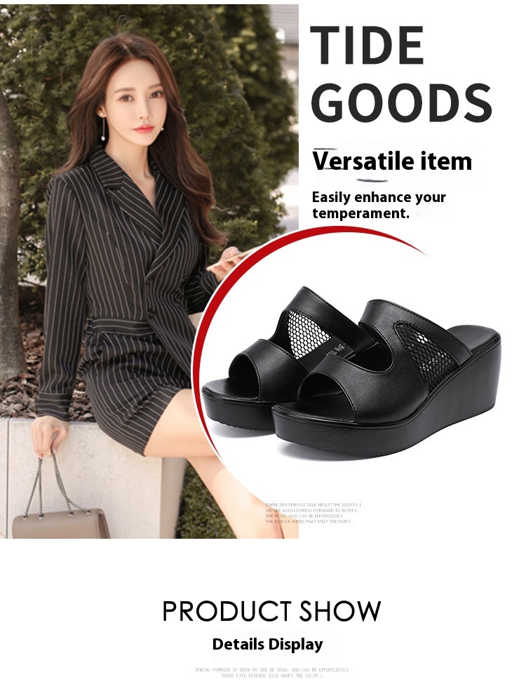 Thick Bottom Waterproof Platform Mesh Patchwork Easy Matching Wedge Sandals