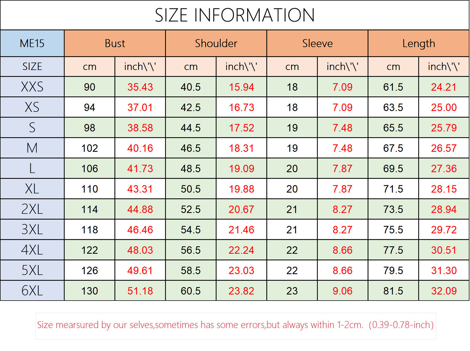 Size: XXS,S,M,L,XL,2XL,3XL,4XL,5XL,6XL